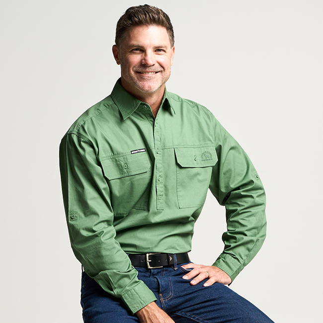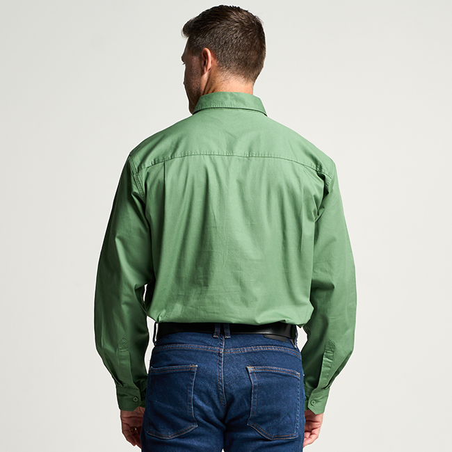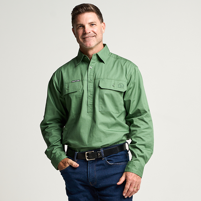 KILCOY | Mens Half Button Long Sleeve Work Shirt - Gum Leaf Green