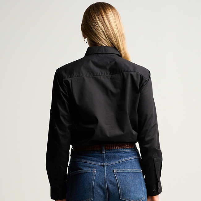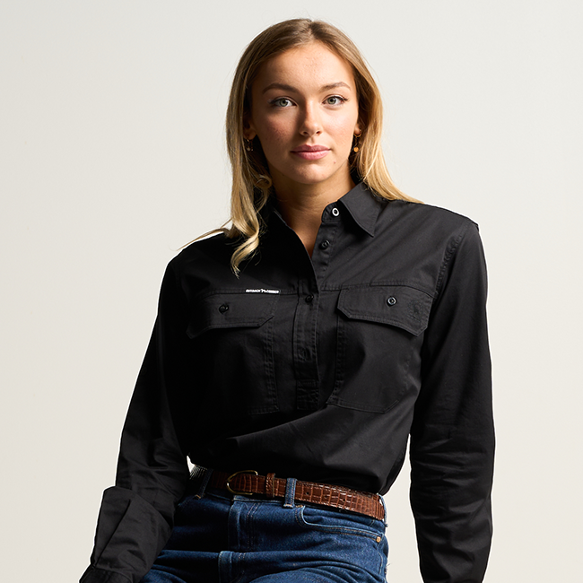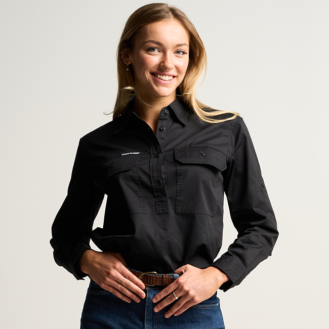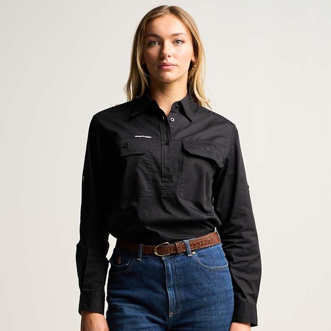SOMERSET | Womens Half Button Long Sleeve Work Shirt - Black
