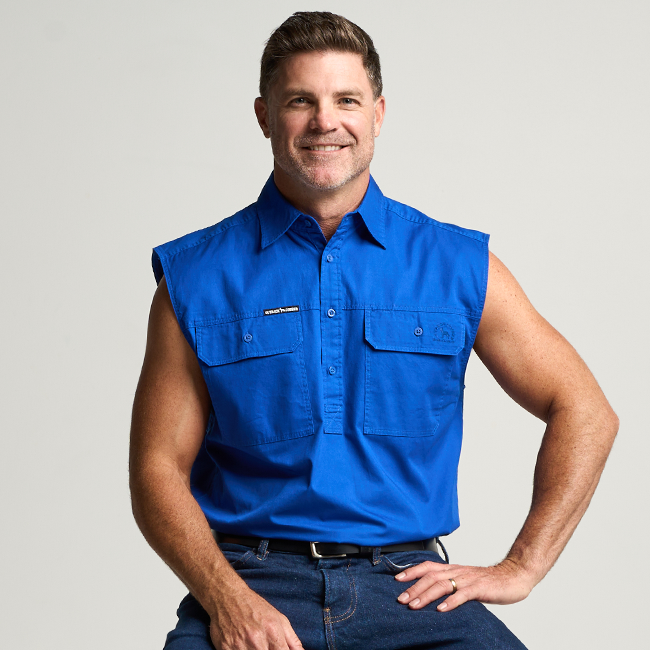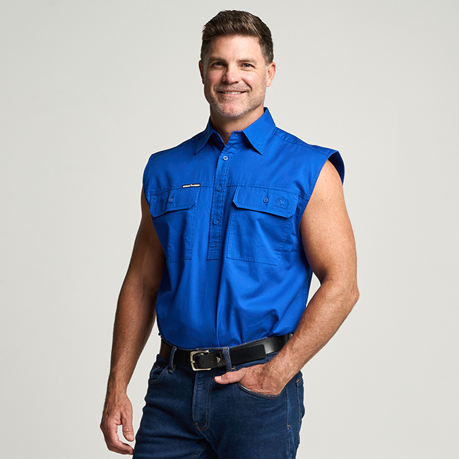 KILCOY | Mens Half Button Sleeveless Work Shirt - Royal
