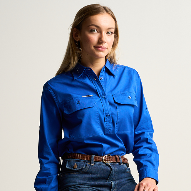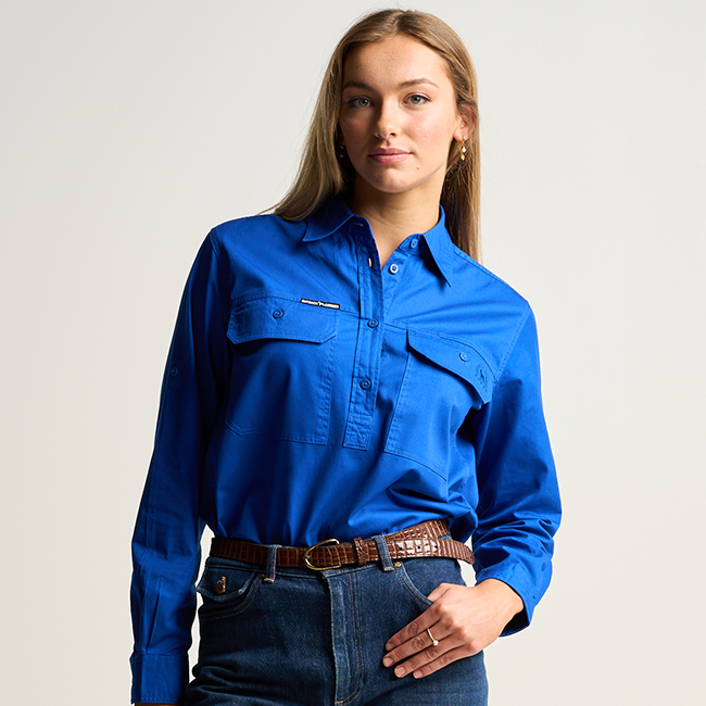 SOMERSET | Womens Half Button Long Sleeve Work Shirt- Royal
